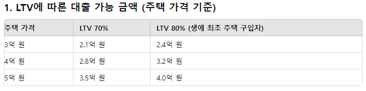 생애최초 주택 구입자의 경우, LTV 비율이 80%까지 확대될 수 있습니다.