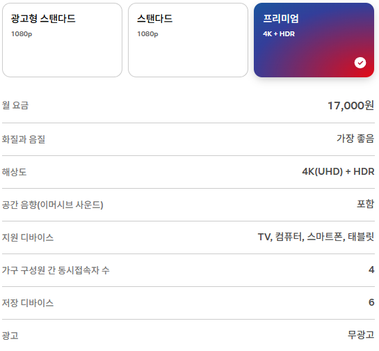 ✅ 프리미엄 플랜: 월 $19.99 — 4K 화질, 동시 4명 시청