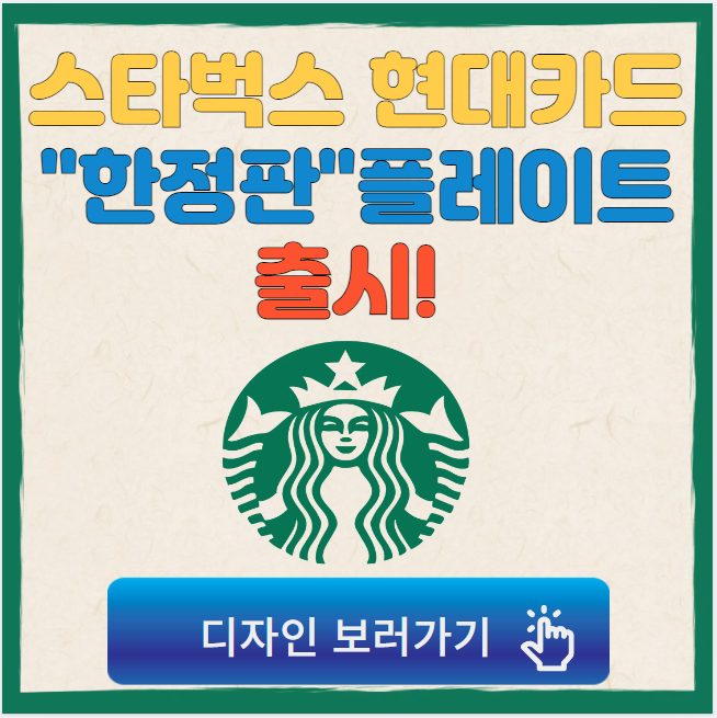 스타벅스 현대카드를 발급받는 방법은 매우 간단합니다. 아래버튼을 통해 신청하실 수 있습니다.