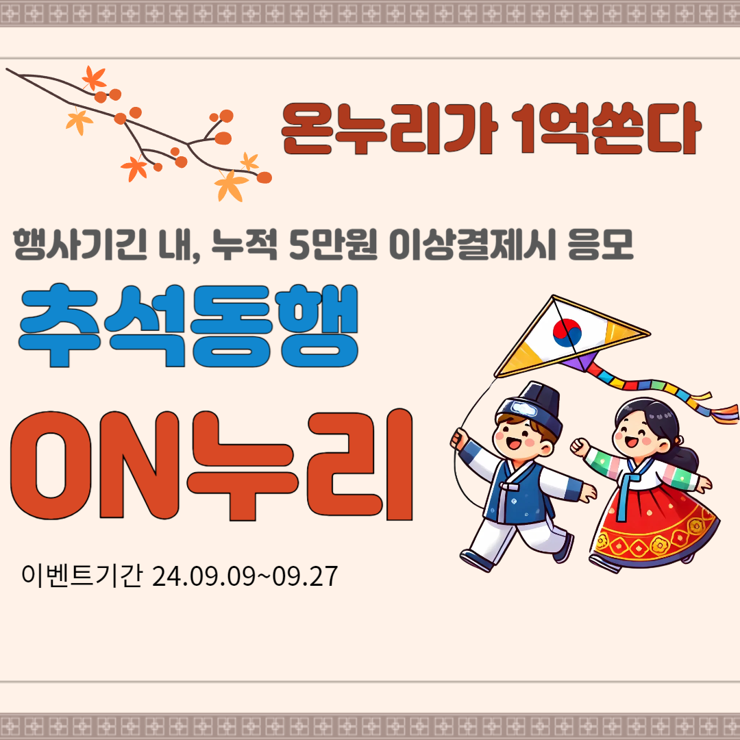 인기리에 조기매진된 "온누리상품권"이 추석대비 특별할인으로 돌아왔습니다.
